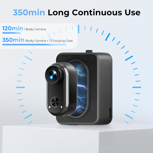 • Kentfaithチェストカメラのバッテリーは、単体で120分間の連続録画を可能にします。充電ケースを使用すれば350分(5.8時間!)まで延長可能。日の出ハイキング、自転車ツーリングの全行程、お子様のサッカー試合を丸ごと撮影するのに十分なバッテリー容量で、電源を探す必要はありません。