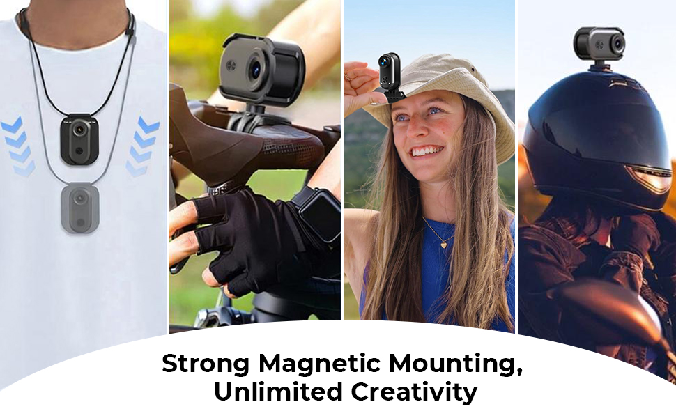 • Kentfaithのウェアラブルカメラは、鉄製の表面に取り付け可能な磁気デザインを採用しています。磁気付きのラニヤードパッドを使用すれば、1秒で胸に装着でき、磁気バッククリップで帽子、ポケット、ウエストバンドに固定できます。さらに、自転車、バイク、ヘルメットなどに使用できる多様なアクセサリーも付属しています。