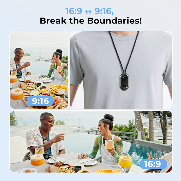 • 私たちのウェアラブルカメラで真の自由を体験してください—本物の一人称視点と100%ハンズフリーの利便性を実現するために設計されています。ヘルメットに取り付けたり、ギアにクリップしたり、ペンダントとして着用したりしても、ウェアラブルカメラは邪魔にならず、あなたの冒険をしっかりと捉えます。