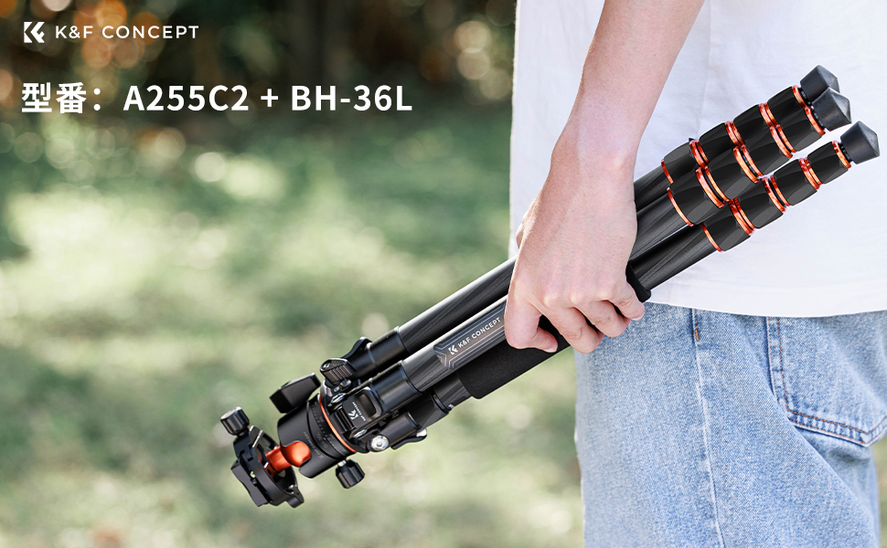 K&F Concept 一眼レフ三脚 カーボン製カメラ 三脚 軽量コンパクト 360度パノラマ撮影一脚可変 最大耐荷重15kg BH-36L雲台搭載 デジタルカメラ ミラーレスカメラ用 中心軸反転 ナットロック式 型番 A255C2+BH-36L