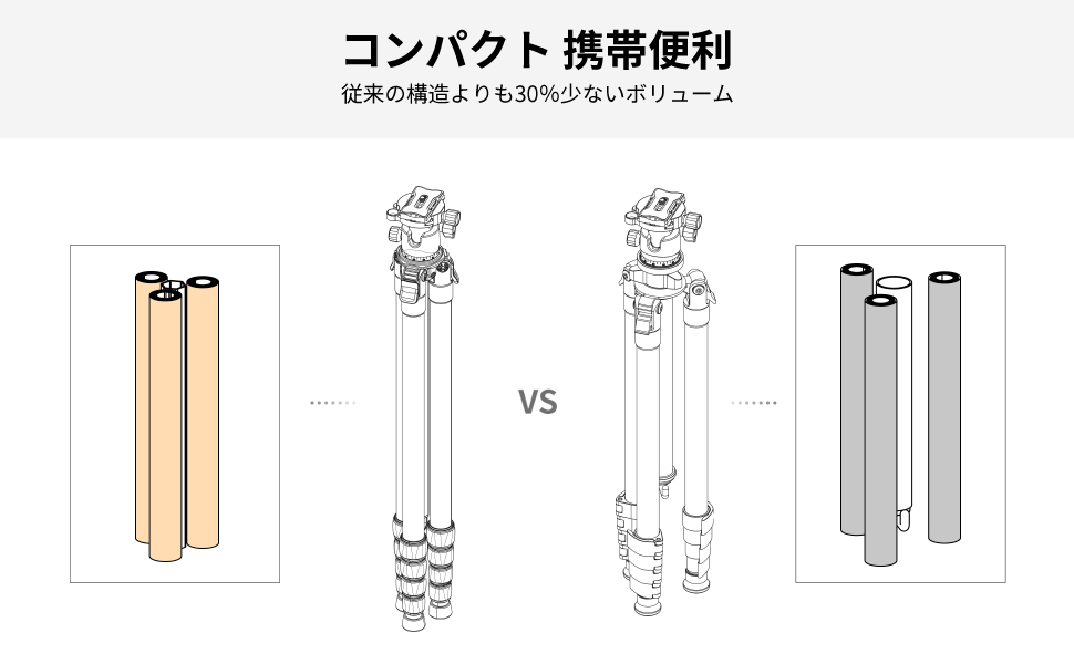 - * 【軽量コンパクト】この三脚は特殊な形状の中心軸設計を採用し、斬新な外観で、収納の時にサイズはわずか49cm、重量は1.3kgです。特殊な形状の中心軸設計により、携帯性を維持しながら、より高い撮影オプションを提供できます。