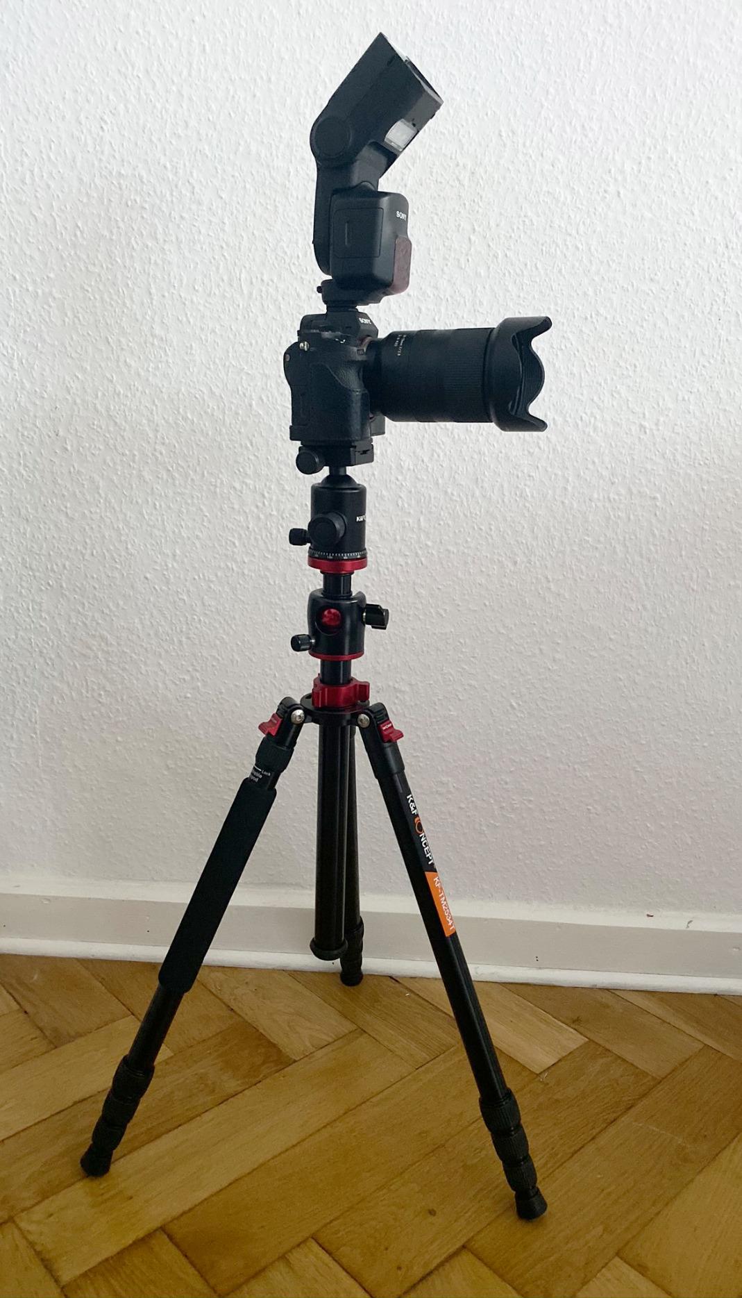 私の古い三脚は拡大表示で移動するときに非常にぎくしゃくしたため、これを購入しました。これは本当にスムーズで、さまざまな用途に適応します。アルカスイスマウントも非常に実用的です。非常に品質が良く、実用的に使えます。非常に小さなスペースに折りたたむこともできます。
