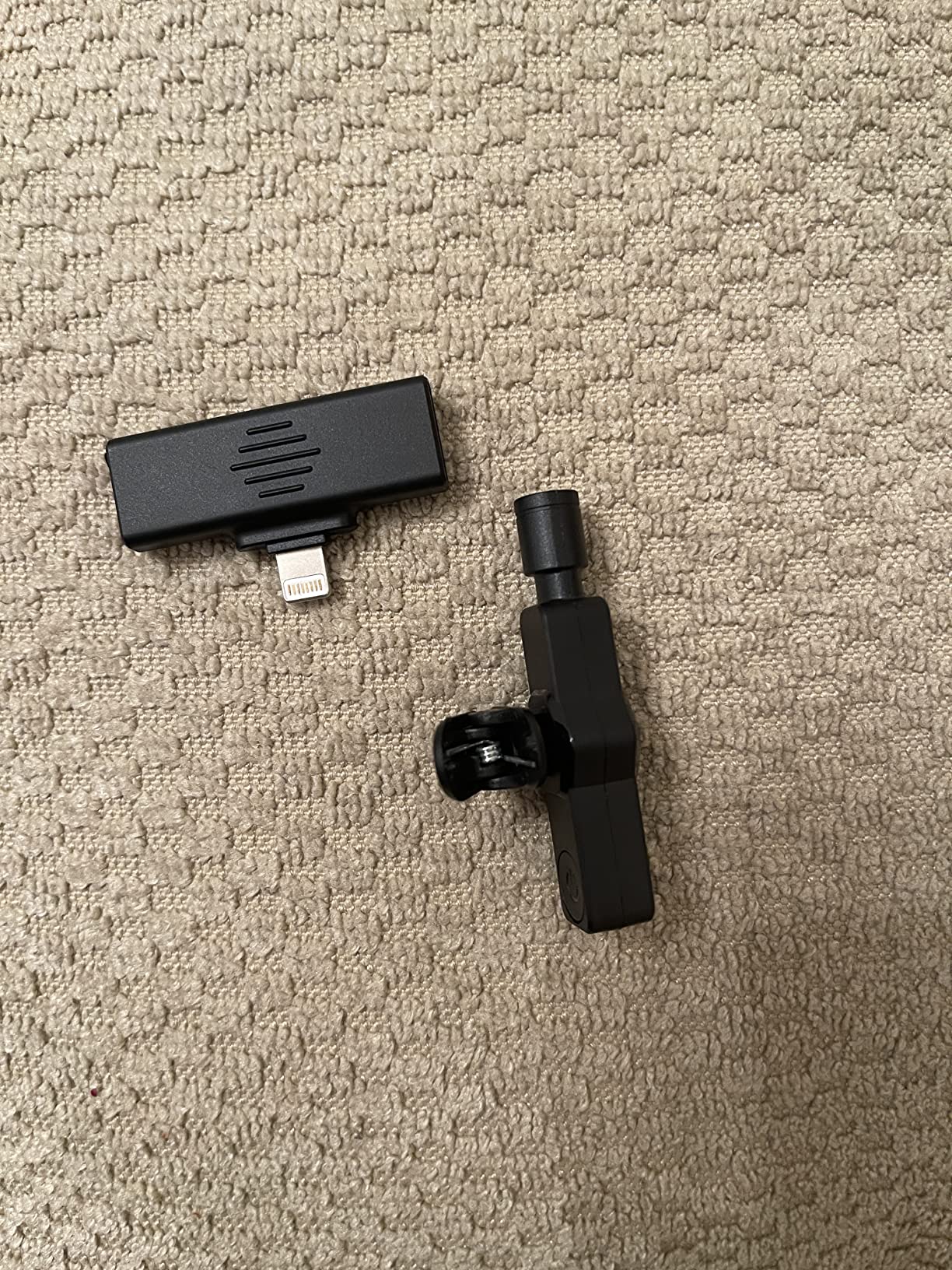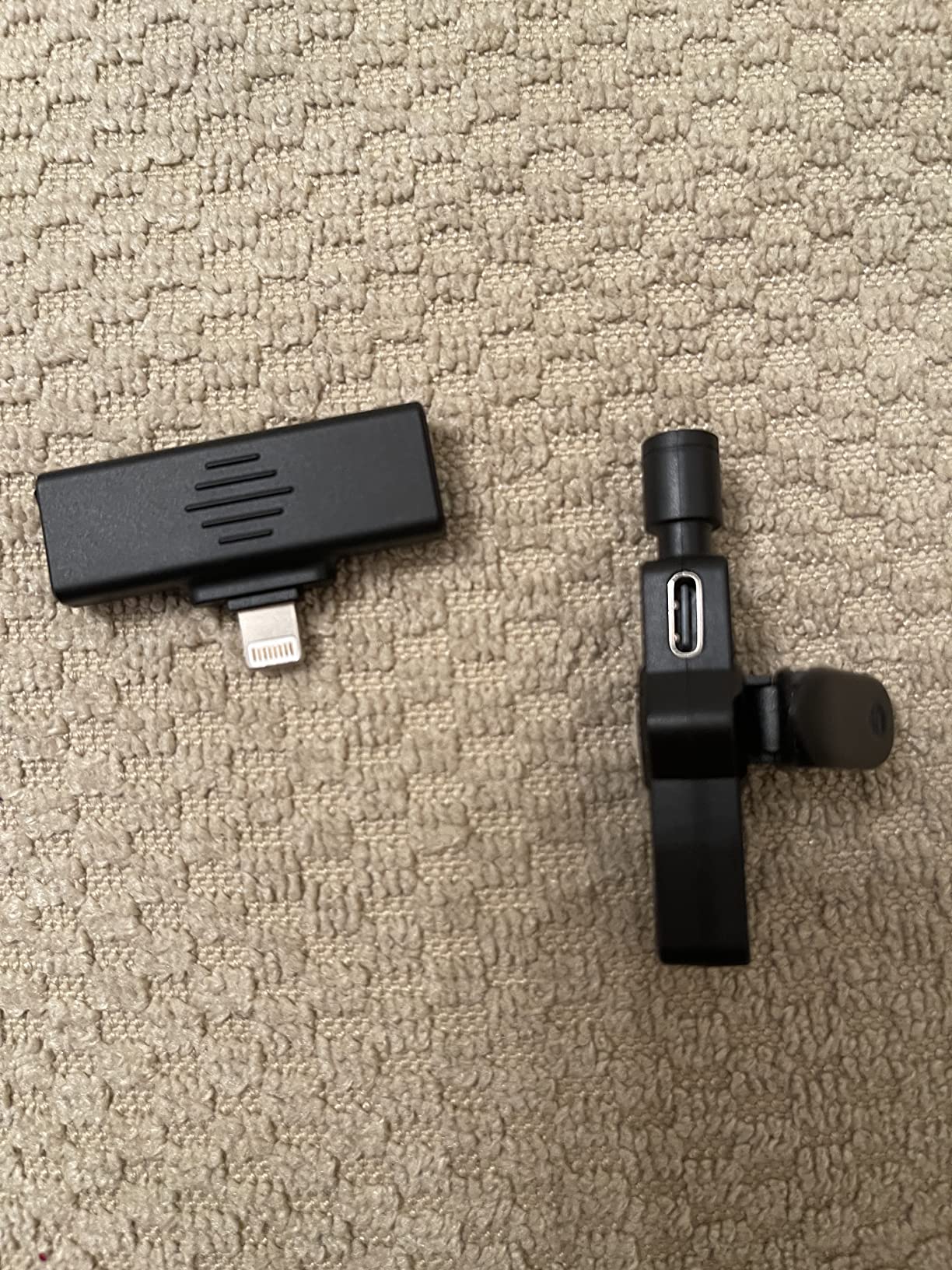 孫娘へのクリスマス プレゼントとして、このワイヤレス マイクを送りました。動作することを確認するために、iPhone で試してみる必要がありました。セットアップはとても簡単です。受信機を電話の充電器ソケットに差し込みます。その後、マイクから録音を開始しました。電話をリビングルームに置き、マイクに向かって話している間、家中をさまよいました。記録はくっきりと鮮明で、このような小さなキットから予想していたよりも優れていました. 定規の横で写真を撮ったので、どれくらい小さいかがわかります.彼女が歌とダンスのルーチンをやっている間、それで満足するでしょう。