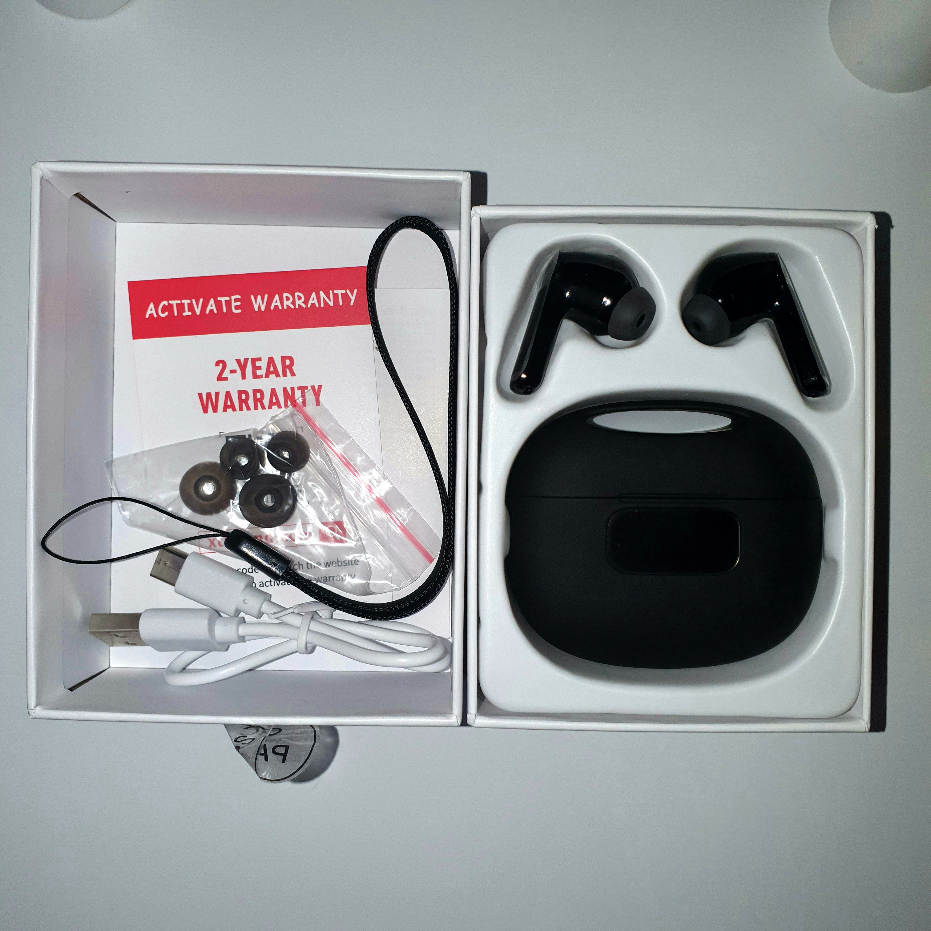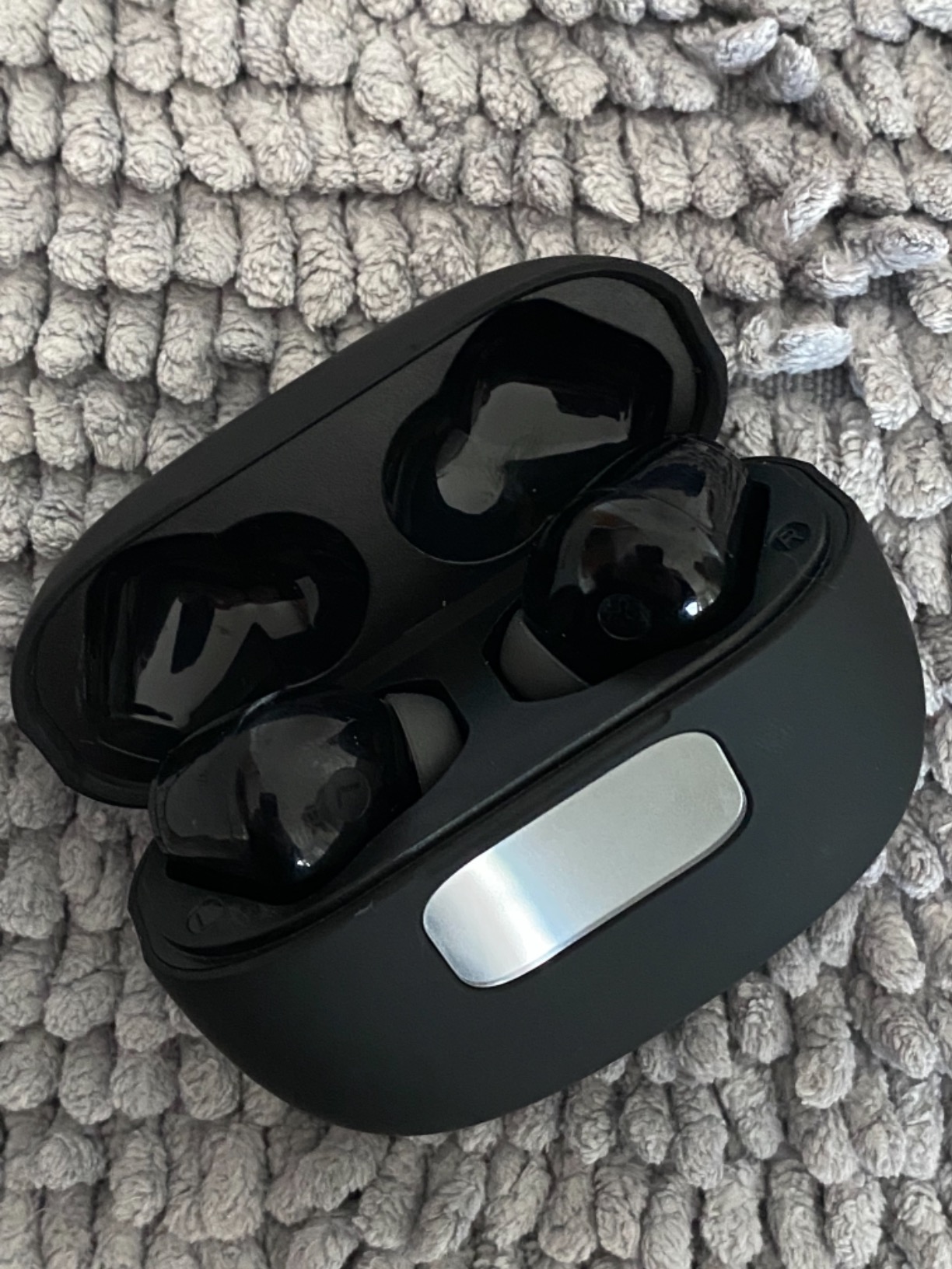 ボックスには、USB C 充電ケーブル、追加のイヤーチップ サイズ、イヤフォン ケースとイヤフォンが含まれています。初めてケースを開くとすぐにペアリングされ、デバイス設定でイヤフォンをクリックするだけで簡単にセットアップできます。ケースとイヤフォンはどちらも軽量で、耐久性に優れた硬質プラスチック製です。イヤホンはグロス、ケースはマットです。R&Lのイヤホンとケースのバッテリー残量を示す画面もあります。バッテリーレベルはどちらもかなりの時間持続します.全体的な音質はあなたを驚かせることはありませんが、全体的に仕事をします. ベースは約 70% でまともですが、その後はわずかに歪んで聞こえます.全体として、これらのイヤフォンは問題なく機能しますが、最高の音質と重低音は期待できません.