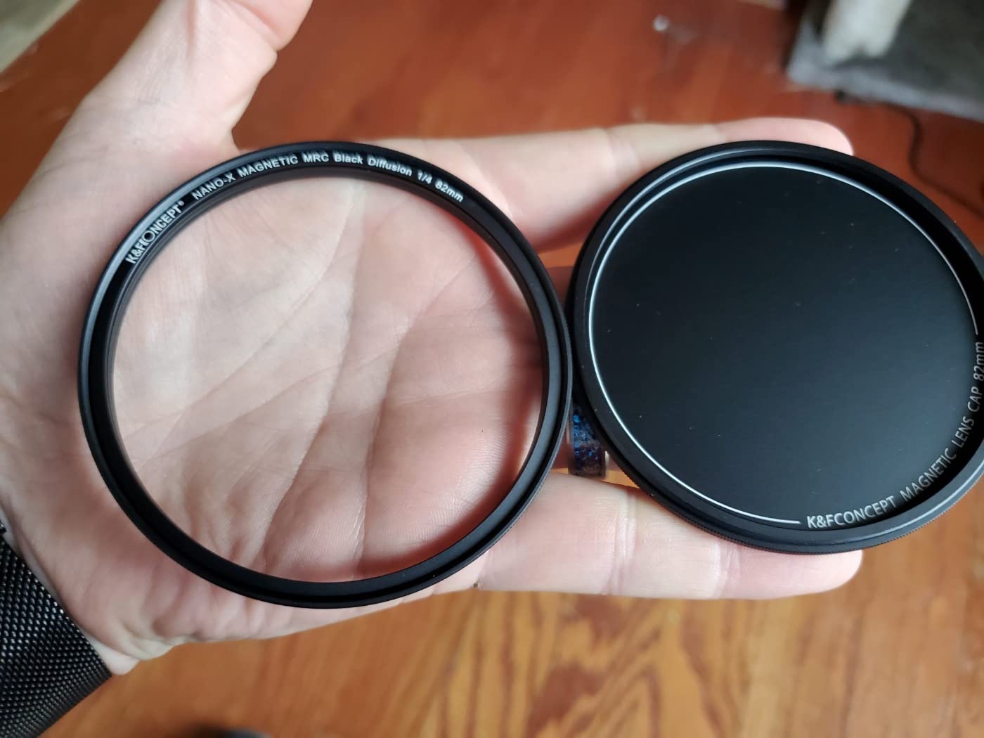 私は通常、コントラストを少し下げてハイライトにブルームを追加する1/8強度の拡散フィルターを使用します。もう少し夢のような見た目をしたいプロジェクトを撮影していたので、1/8の強さよりも少しだけ強いはずなのに、映像があまり夢のように見えないように、これを試してみたかったのです。それは確かにまさにそれをしました。私はこのフィルターでとてもリアルな色かぶりに気づきました。ハイライトでより強く咲き、フッテージをより柔らかく、よりフィルムのような外観にしました。1/4フィルターが提供できるより強力な効果が必要であることを確認してください。それが強すぎる場合、K&Fは優れた1/8強度の黒拡散フィルターを作ります。磁気システムは非常にうまく機能します。すべてのフィルターがこのタイプの使いやすいクイックリリースシステムを使用することを望みます。