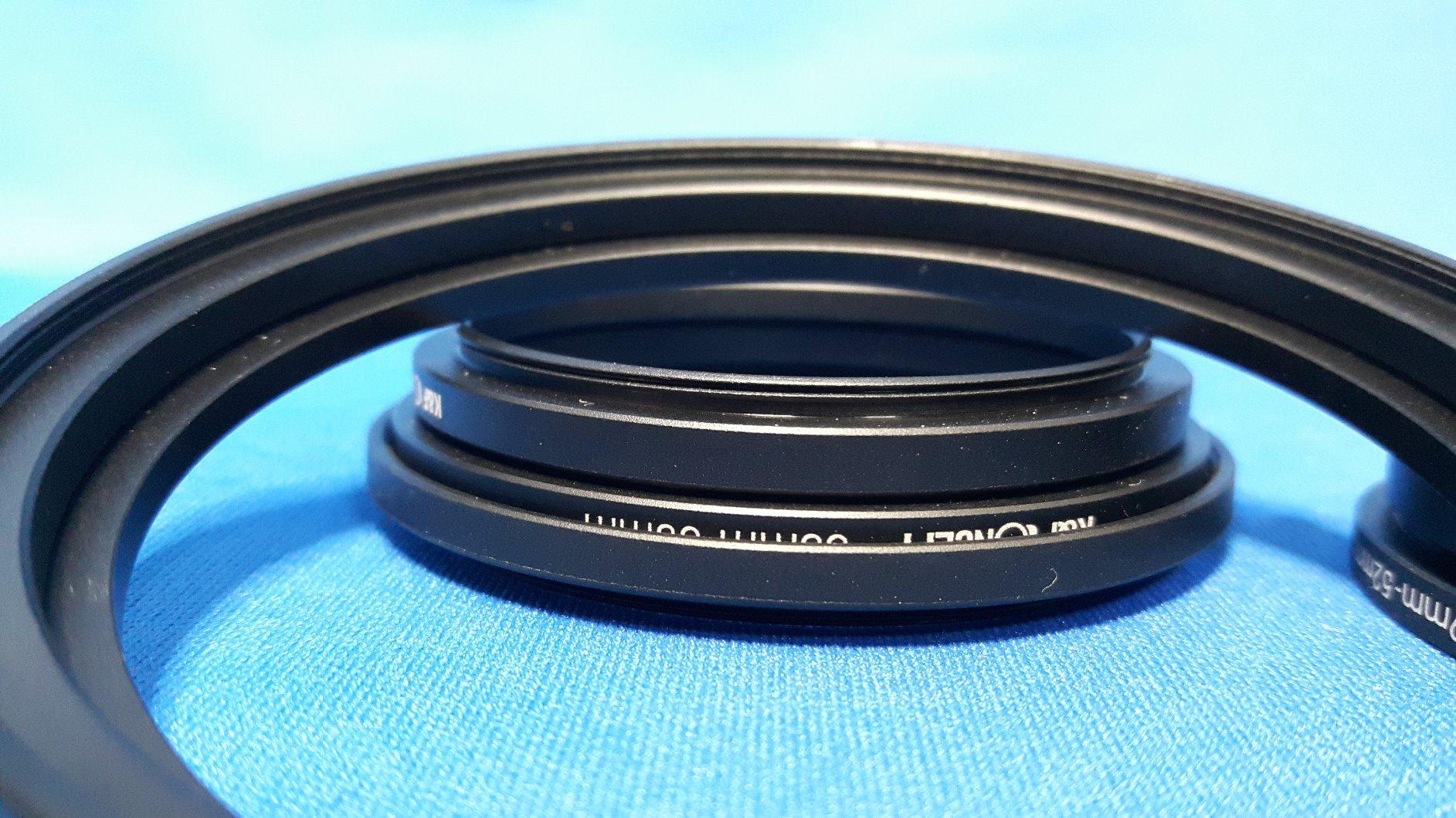 これは、9ステップアップと9ステップダウンのフィルターアダプターの広範なセットです。最も安いわけではありませんが、優れた品質で、以前に購入したものよりもはるかに優れています。リングを組み合わせることはできますが、リングを組み合わせるとケラレが発生する可能性があることに注意してください。