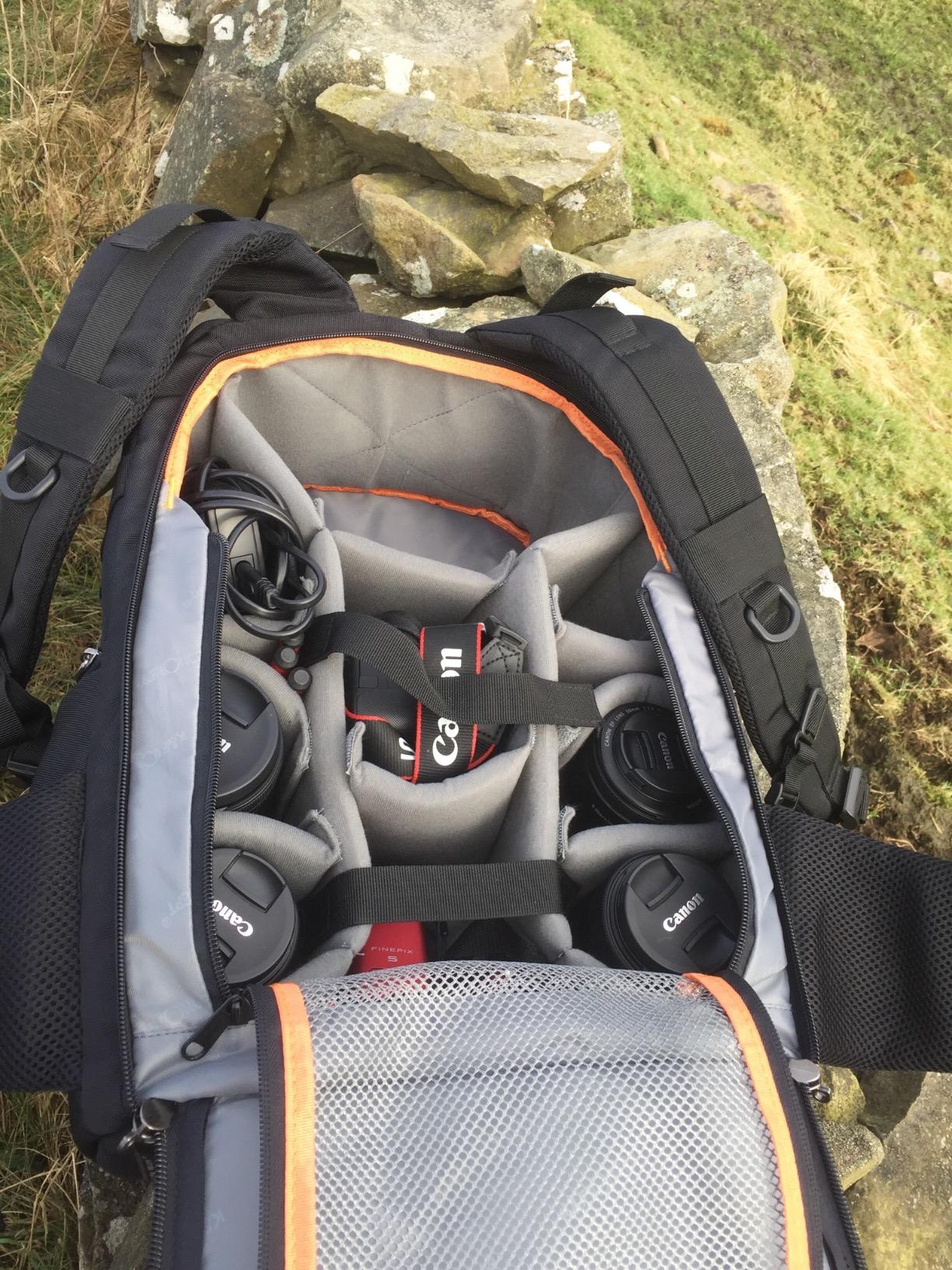 カメラやレンズを収納するのに十分なスペースを備えた、非常に頑丈で高品質のリュックサックです。カメラ部が背中に当たるので安心・安全です。セクションはパッド入りで取り外し可能 (ベルクロ) で、カメラを所定の位置に保持するための 2 つのベルクロ ストラップもあります。リュックサックの周りには他にもいくつかのポケットがあり、そのうちの 1 つは iPad を収納できます。肩、腰、胸で完全に調節可能で、背中には優れたパッドが付いています。私はこのパックに4つ星を付けましたが、これはおそらく背の高い人(私はわずか5フィート3です)により適していると感じ、肩にぴったりとフィットしないと感じたためです. .