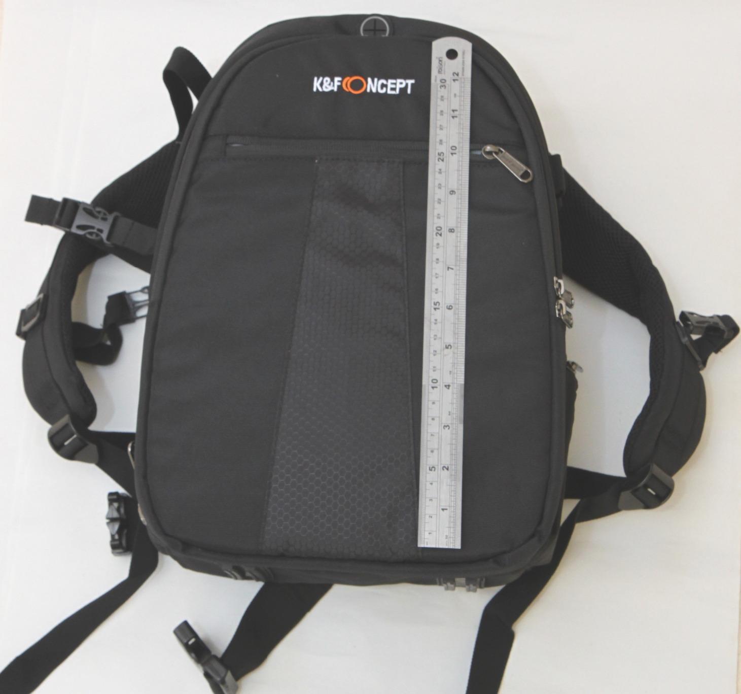 これは、K & F Conceptのかなり素敵なカメラバッグで、多数のカメラアクセサリー(およびカメラ)を安全かつ確実に運ぶことができます。実際には、常に便利なタブレットを運ぶこともできます。このバッグは、対照的な明るいオレンジ色の裏地とよくパッド入りのコンパートメントを備えた黒い防水ナイロンで作られています。このバッグは高さ37.5cm×幅27cm×奥行き16cmのとても良いサイズです。このカメラバッグのデザインには多くの考えが払われていることは明らかです、バッグのメインセクションは、レンズ、フラッシュなどを保持する24つの同じサイズのパッド入りコンパートメント(これらのコンパートメントはフォームディバイダーを動かすことでサイズを変更できます)を含むダブルジッパー付きフルサイズ領域です。夫のカメラを入れるのに最適な大きなコンパートメントが<>つあります。別のハーフジッパーポケットは、東芝タブレットをうまく保持し、このセクションには、スリムなポケットに加えて、ペン、鉛筆、その他の文房具に最適な大きなメッシュポケットがあります。バッグの側面にある他のポケットはより多くのアイテムを運び、素敵なタッチはそれ自身の小さなナイロンポーチの中にある防水カバーです。パッド入りのストラップはこのバッグを持ち運びに非常に快適にします、少なくとも私の夫はそう思います、一方で私は私のハンドバッグよりはるかに重いものを運ぶつもりはありません。全体として、これは良い撮影セッションに必要なすべてのものを運ぶために使用できる本当にスーパーカメラバッグであり、私の夫はこのリュックサックの品質と有用性に絶対に興奮しています。そして、<>ヶ月の保証で、私はこのバッグを推薦するのに問題はありません。注意:私は親切にこの製品をテストしてレビューの形で私の正直な意見を与えるために送られました