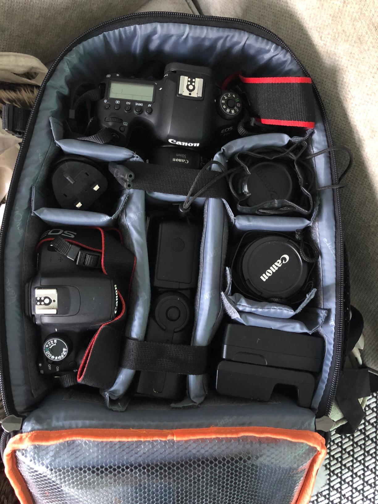 今まで、Canon 6D Mark II をトートバッグに入れてドアハンドルにぶら下げていましたが、これは理想的ではありません! カメラバッグを買う時が来たと思い、これに落ち着きました。それはすべてのためのスペースを持っています。DSLR ボディ 2 台、レンズ 3 本、フラッシュ ガン 1 個を収めることができました。側面には、旅行用の三脚 (今すぐ購入する必要があります) 用のスペースがあります。別のレンズ用のスペースも!ヘッドフォン、携帯電話、財布などの小物用の追加ポケットもいくつかあります。ラップトップはここに収まらないと思いますが、iPad は間違いなく入ります。 Lightroom で編集するので、実際にはラップトップを持ち込む必要はありません (13 インチの 2014 macbook air を持っているので、11 インチで十分です)。
